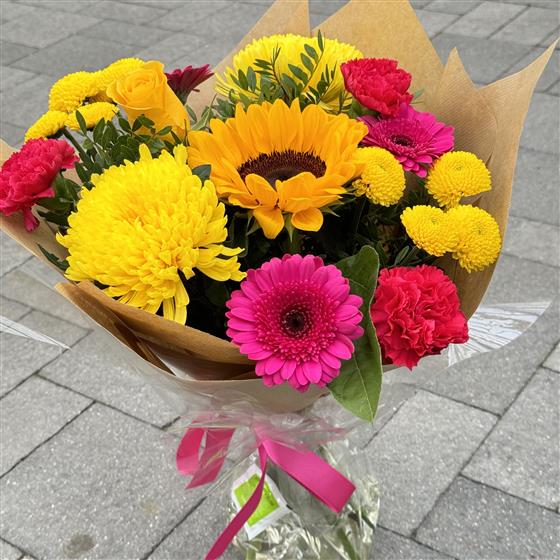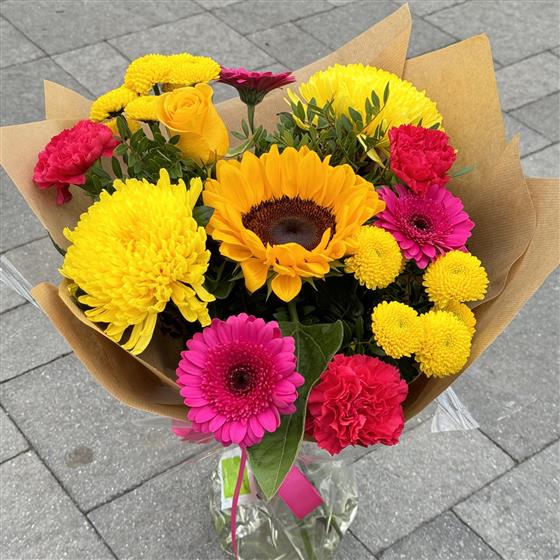 This month we have a bright and beautiful bouquet to represent the colours of summer. The vibrant mix of seasonal blooms make this bouquet a perfect gift to put a smile on someone's face or celebrate any occasion this July.