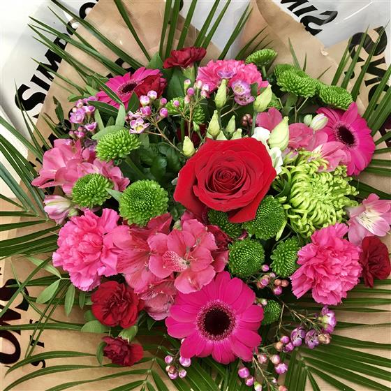 Not just for Valentine's Day, this absolutely beautiful hand tied bouquet is filled with blushing pinks, vibrant reds and delicate mauves to create the perfect gift for that special someone this February. Complete with beautiful single red rose for the perfect sentiment.