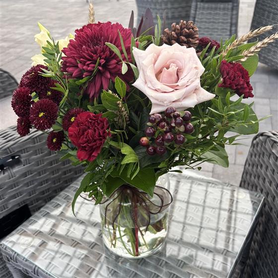 Please note that due to the seasonal availability of flowers it may be necessary to vary individual stems from those shown. Our skilled florists may substitute flowers for one similar in style, quality and value. Where our designs include a sundry item like a vase or basket it may not always be possible to include the exact item as displayed. If such an occasion arises we will make every effort to replace the item with a suitable alternative.