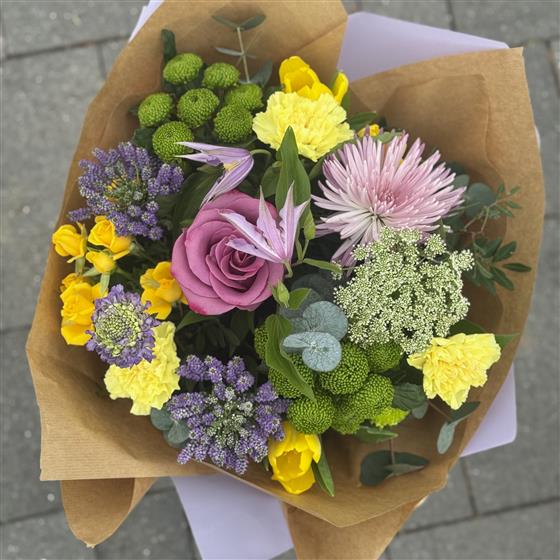 Treat mum to a bouquet just as beautiful as her. Our handtied bouquet is a stunning mix of seasonal blooms perfect for gifting this Mother's Day.