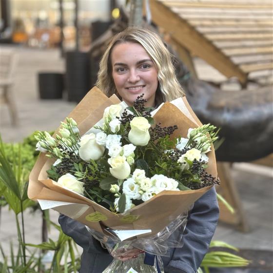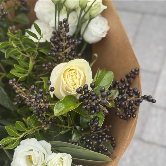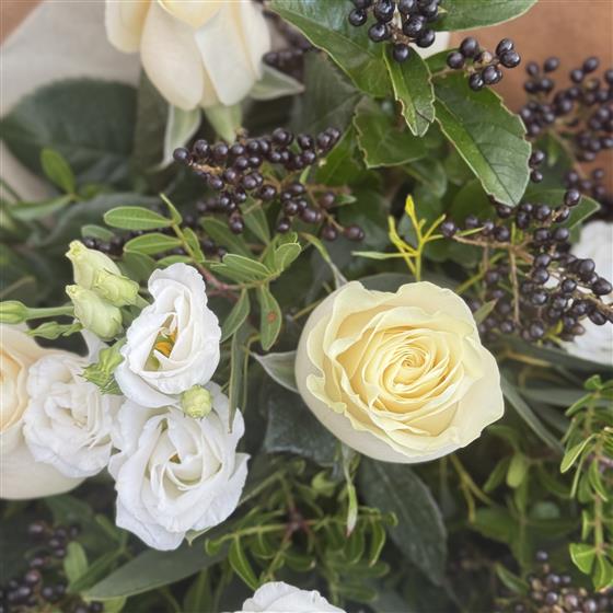 Looking for the perfect gift this November? Our florists have created an elegant arrangement of flowers, perfect for gifting for any occasion. The beautiful white roses contrasting with the berries and foliage create a stunning seasonal mix.