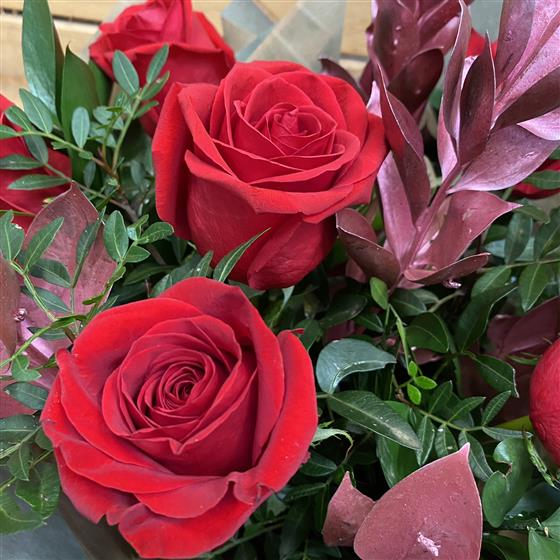 And nothing expresses LOVE like sending stunning red roses! All of our bouquets have beautiful large freedom roses with contrasting rose gold ruscus and green foliage to finish off, all hand wrapped and beautifully finished with love.