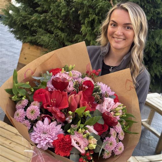 Now this is a WOW bouquet! The perfect 'I Love You' this Valentines Day. Our showstopper bouquet is the perfect choice, filled with stunning bright and beautiful colours to bring a smile to that special someone's face.