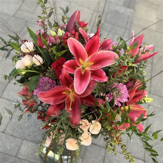 Please note that due to the seasonal availability of flowers it may be necessary to vary individual stems from those shown. Our skilled florists may substitute flowers for one similar in style, quality and value. Where our designs include a sundry item like a vase or basket it may not always be possible to include the exact item as displayed. If such an occasion arises we will make every effort to replace the item with a suitable alternative.